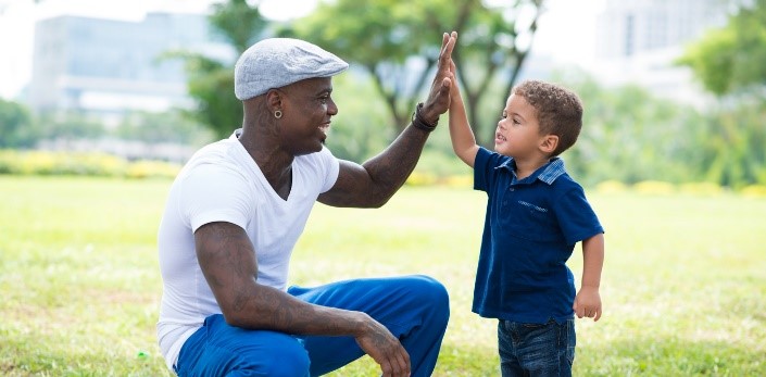 Just like adults, children feel good about themselves when they accomplish a task.  Let them know you are proud of them by praising them for what they have accomplished.  Praise can be verbal (“You did it!” or  “I’m so proud of you!”) or physical (giving a “high five” or a hug).  This can be a confidence booster for them to take the initiative to undertake a new challenge.